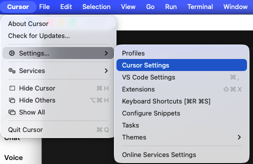 设置 ProjectRules:在 Finder 上右键,选择前往文件夹,输入~/.cursor/,在文件夹下新建 rules 文件夹,然后把 project_rules 的内容拷贝进去;