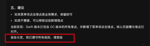 而如果不通过 Subagent,在迁移后,就会手动让 AI 再 check 逻辑和埋点是否有丢失。。。这也是为什么会有上面的那个埋点 skill(😂)